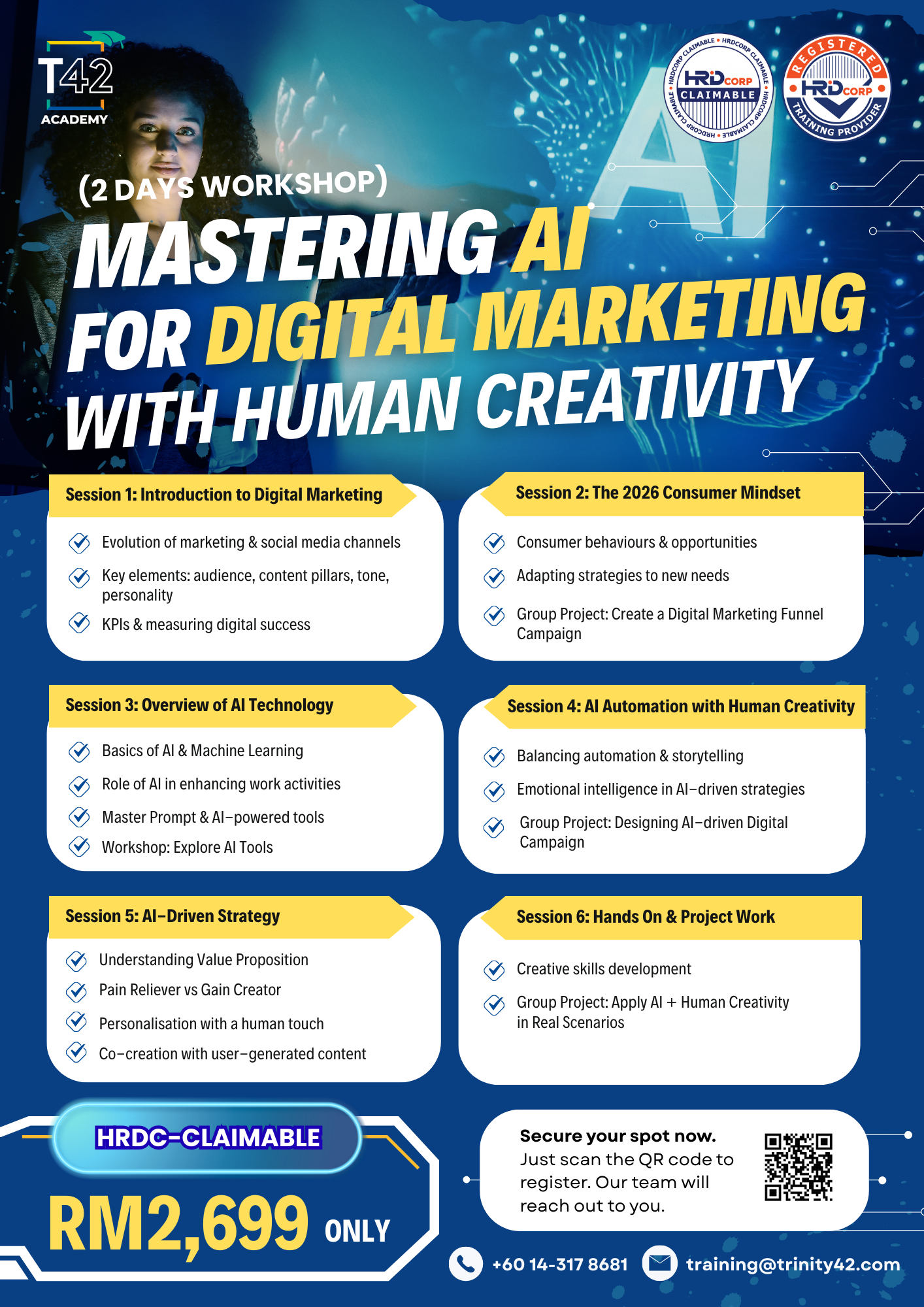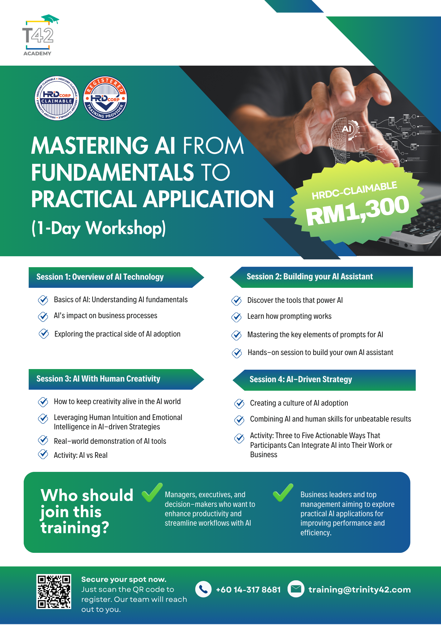 T42 Academy isn’t another training provider jumping on the AI bandwagon. We’re the training arm of Trinity42 Digital, a digital strategy agency that has been building, scaling, and automating businesses across Malaysia and beyond for years.